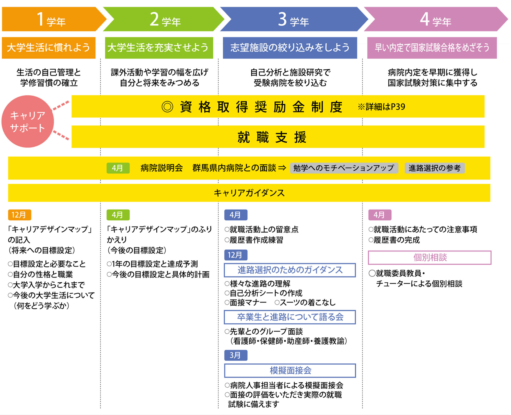 どのような道で活躍したいのかキャリアデザインを考えましょう。