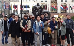 NY市立大学ラガーディア校を訪問し、国際交流ワークショップに参加しました。ここでは、日本語を学ぶアメリカ人学生とともに絵手紙実践を通じて直接交流を図ることができ、さらに一緒に市内観光も楽しみました。また、JETRO事務所や国連日本政府代表部を訪問し、現地で活躍する邦人職員による講話を通じて海外勤務の意義や尊さを知りつつ、アメリカ経済・社会の実態や国際社会での国連の役割等を学修しました。