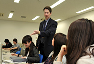 一般選択科目における語学では、外国人スタッフを多数配置。できるだけ日本語を使わずに授業を行います。