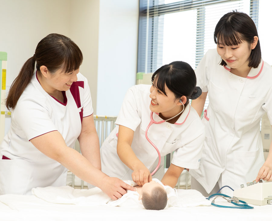少人数制と最先端の教育環境を導入。密度の濃い「理論-演習-実践-理論」のカリキュラムを整備しています。看護情報や基礎看護学中心の実践的科目編成に加え、看護学導入部分から分りやすく体系的に学修できるカリキュラムを用意しています。