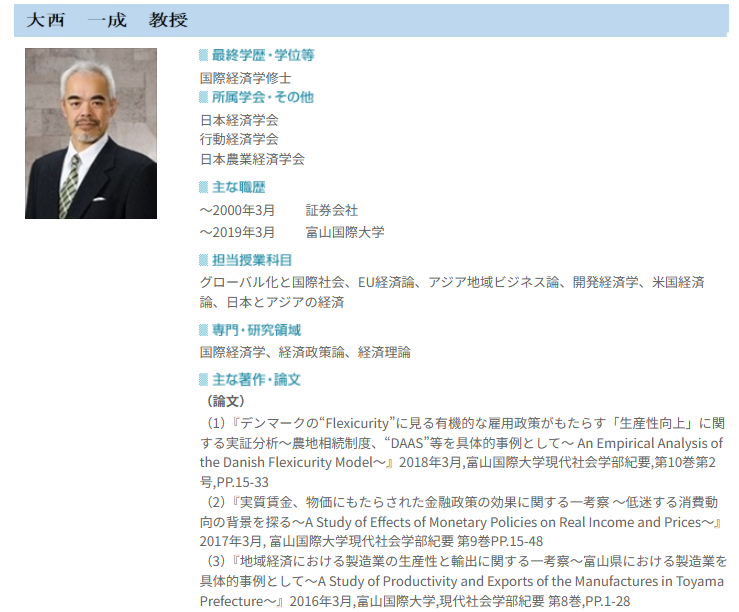 | 大西 一成 | 教授 | アジア地域ビジネス論、米国経済論等 |