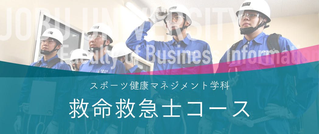 現代の日本では、社会の成熟を背景として、広い年齢層にわたってスポーツへの関心が高まっています。平成14年の健康増進法の制定もこのような社会の潮流に基づくものと言えるでしょう。本学ビジネス情報学部は、このような社会の趨勢をいち早く察知し、平成19年にスポーツマネジメント学科を設置。平成26年に柔道整復師コースを加え、新生ビジネス情報学部の一角を担うスポーツ健康マネジメント学科が誕生。平成31年には新たに救急救命士コースが設置され、より高度な専門知識の修得が可能となりました。
