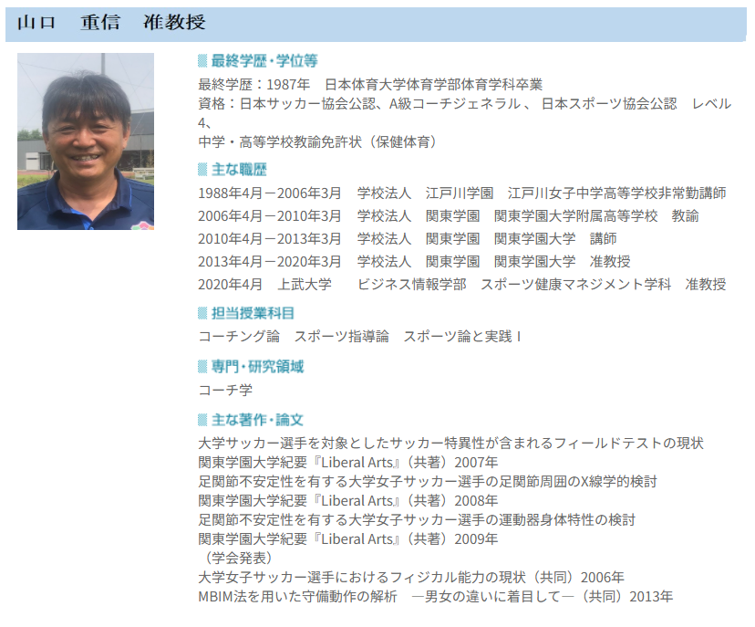 | 山口 重信 | 准教授 | コーチング論等 |