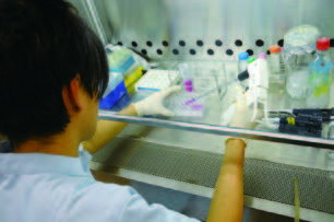 研究所では定期的に学生アシスタントを募集し、研究に関心のある看護学部の学生が癌細胞の培養などの実験に参加しています。