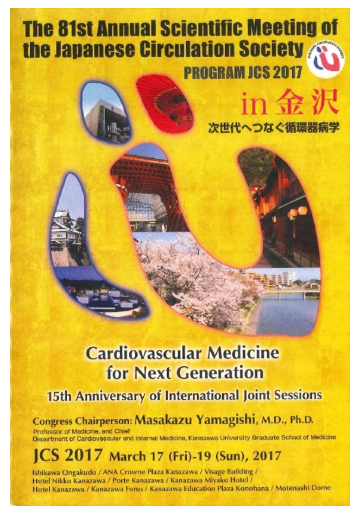 また、澁谷所長は第81回日本循環器学会の山岸正和会長の要請により、3月18日に金沢市で開催された同学会学術集会において真下記念講演の講演者を務めました。真下記念講演は、昭和13年-20年に日本の循環器学の基礎を築かれた真下俊一教授(京都帝国大学)を記念するものです。(下の写真は本学会のプログラム集表紙)