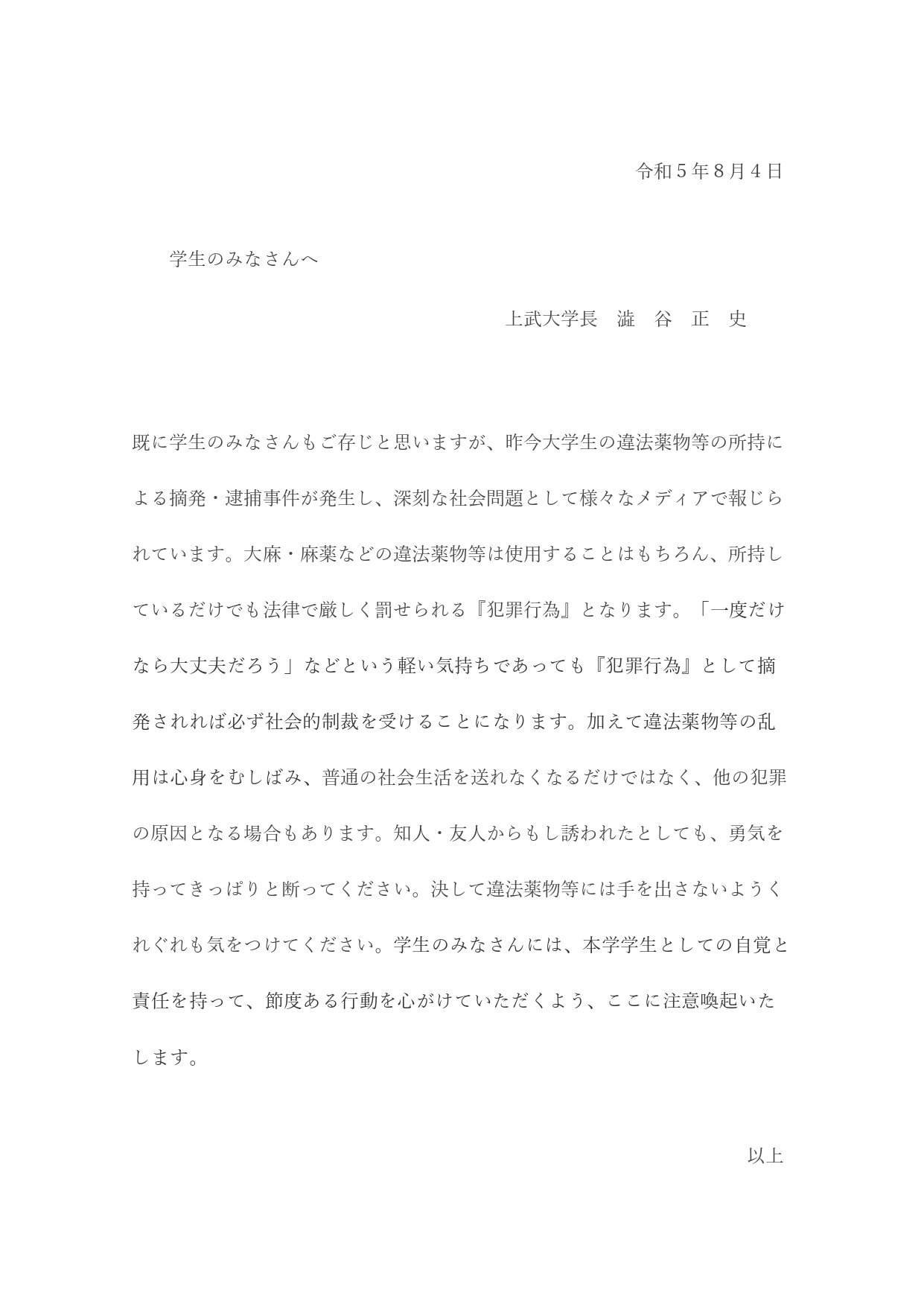 学長メッセージ