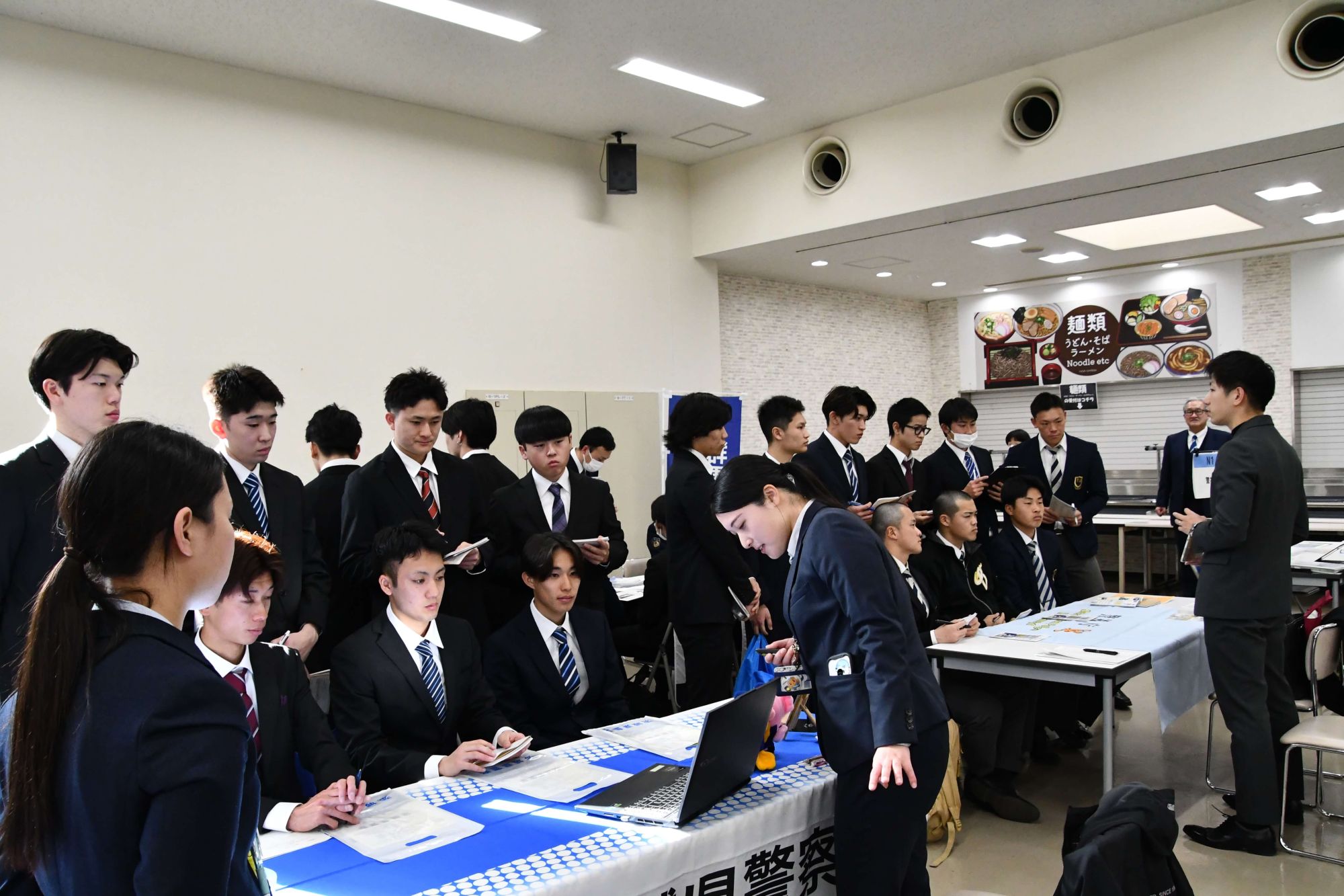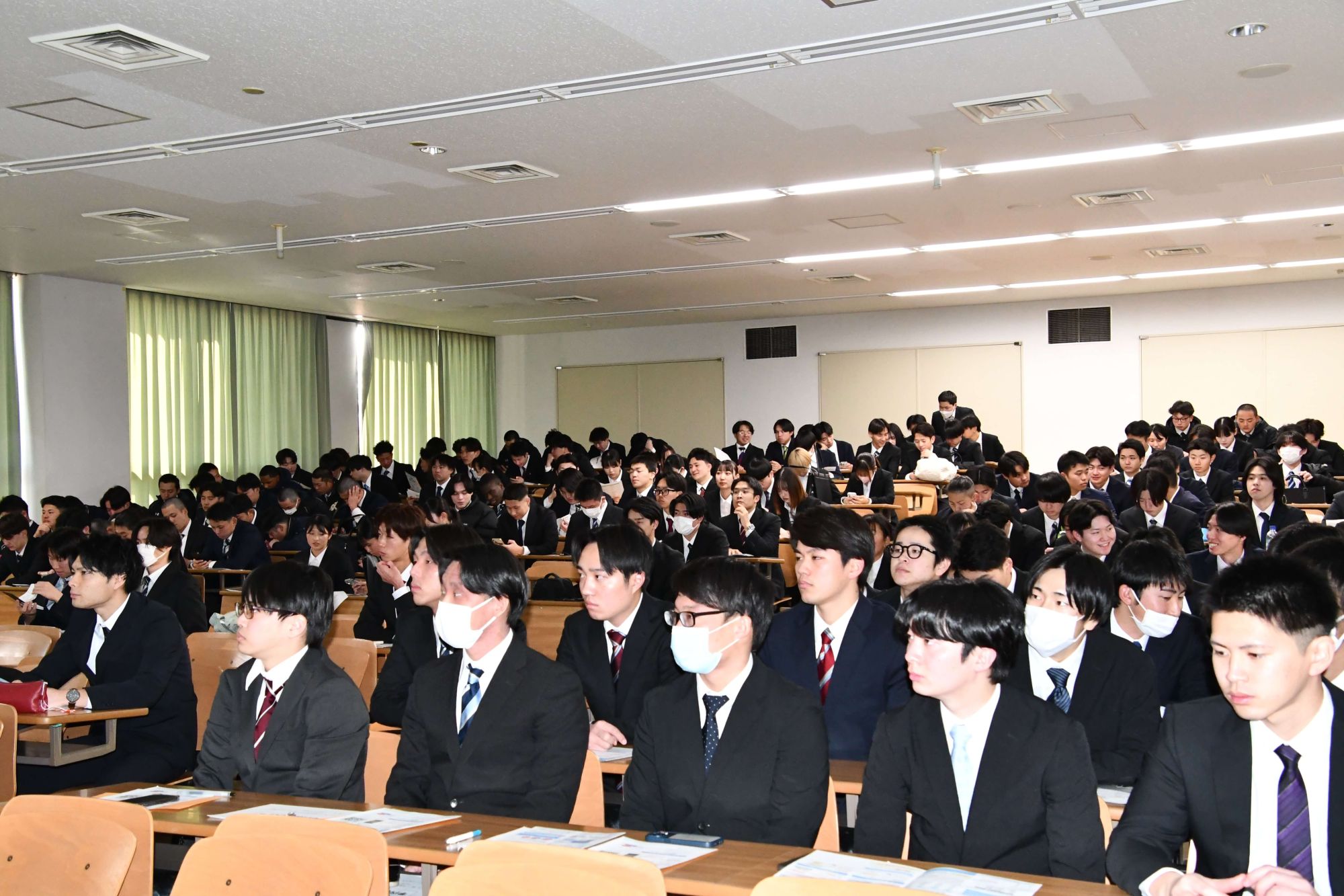 1月28日(水)ビジネス情報学部3年生を対象に、これから本格化される就職活動に向けてのイベント「学内就職セミナー」が伊勢崎キャンパスにて開かれました。本イベントではまず始めに、外部講師による事前研修が行われ、就活におけるマナーや今後のスケジュール、注意点などのレクチャーを受けました。その後は本学に来校した県内外の企業64社がそれぞれブースを設置したセミナー会場で、参加した190名の学生は真剣な眼差しで希望の企業から仕事内容や採用ステップなど聞き入っていました。