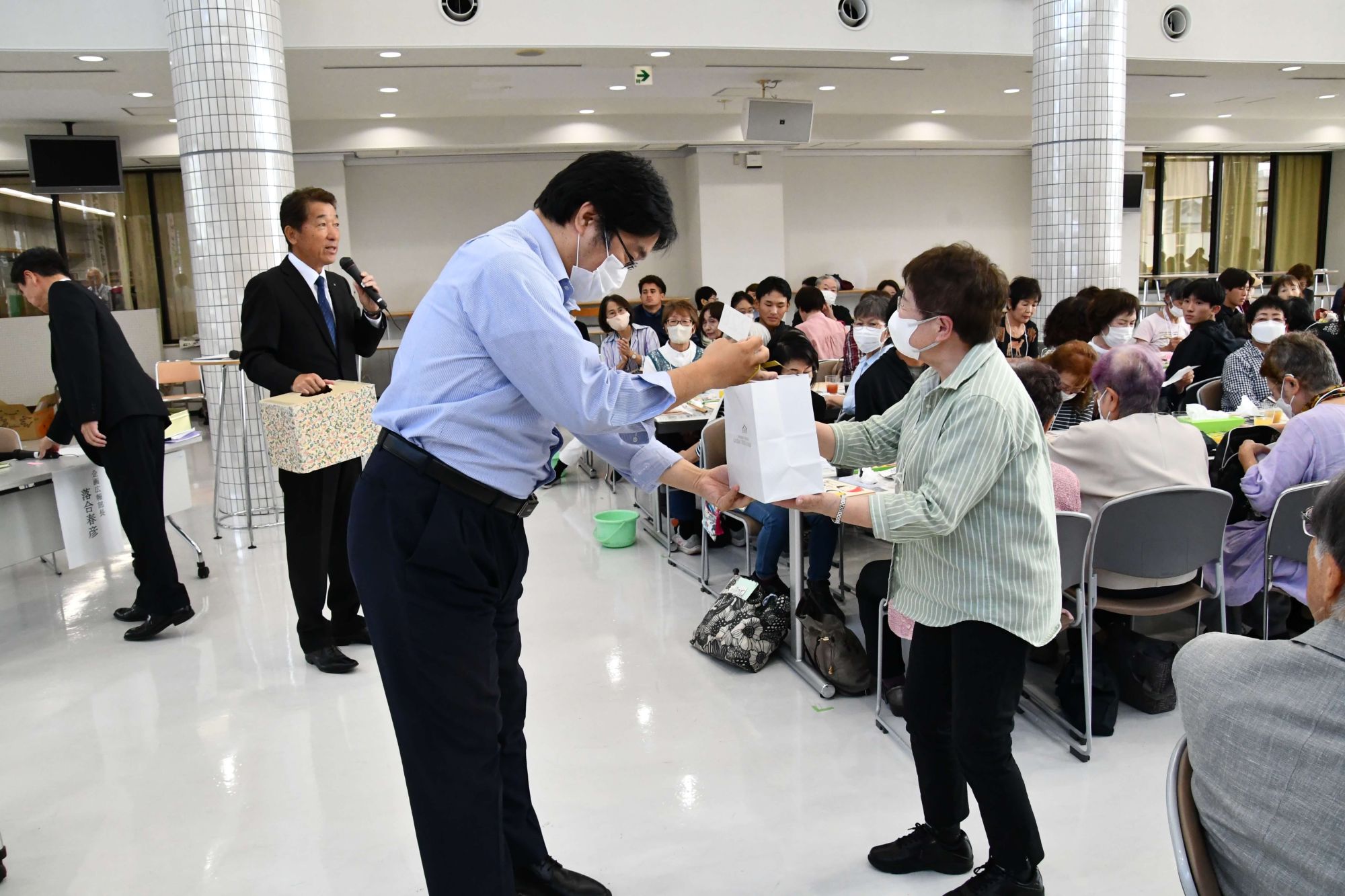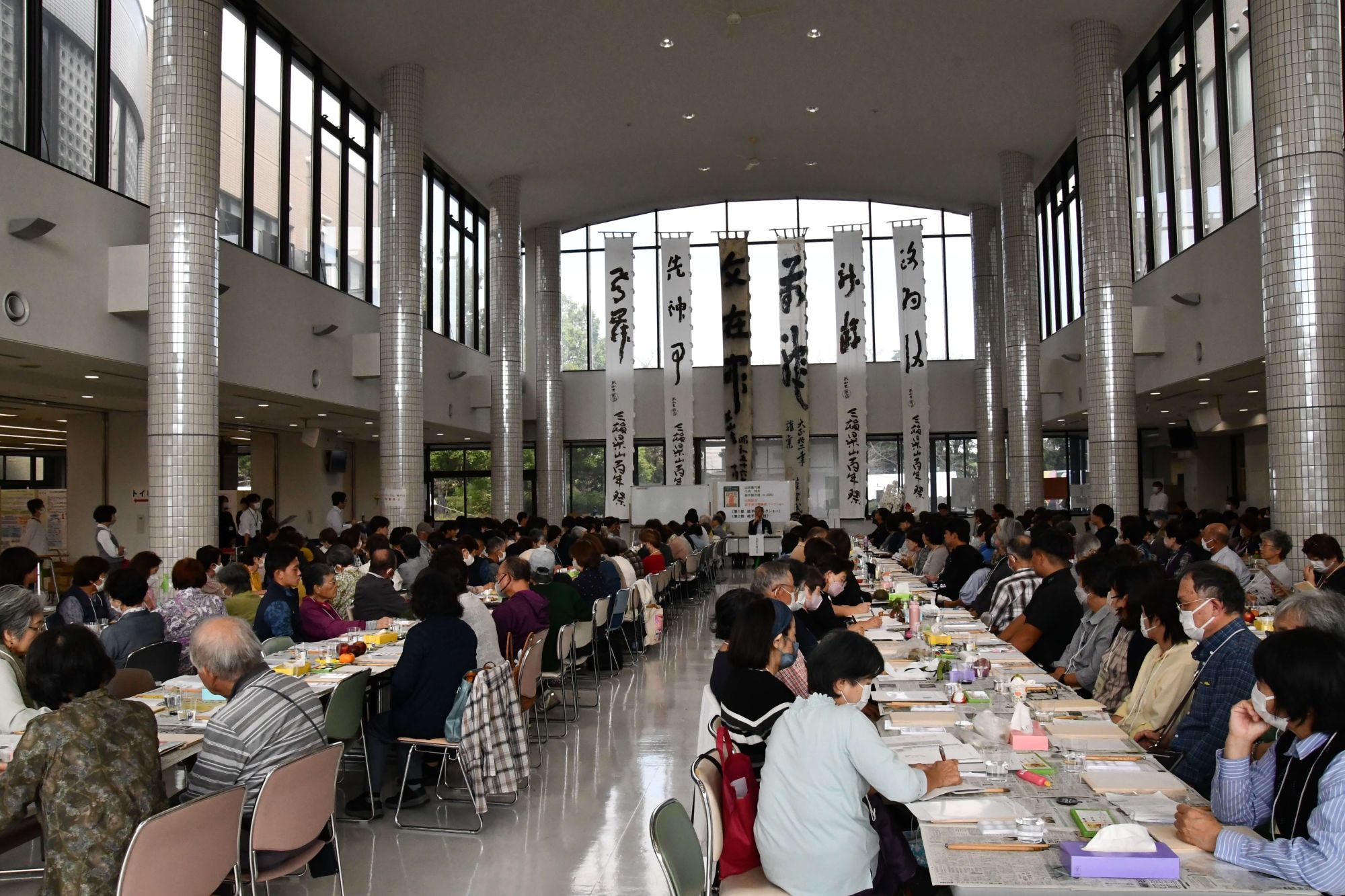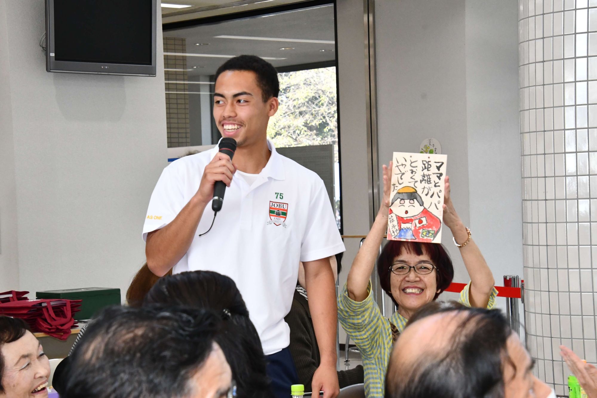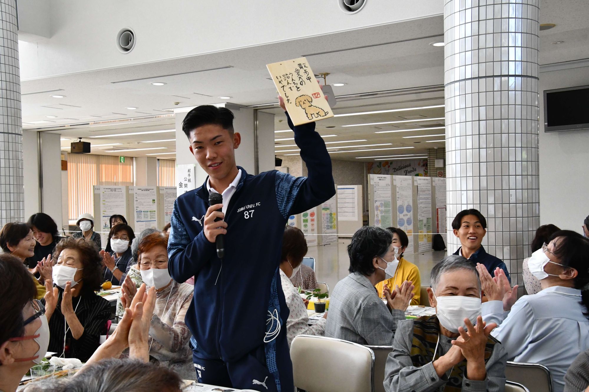 「山田喜代春 小池邦夫 絵手紙交流 in JOBU」出版記念として、10月12日に公開講座が開催され、全国各地から約200名の来場者が上武大学高崎キャンパス学生ホールに足を運びました。 講座第一部では、澁谷朋子学園長、日本絵手紙協会の登坂和雄会長、小池邦夫先生の奥様である小池恭子先生、ご子息の小池龍さんによるトークショーが行われました。山田喜代春氏と小池邦夫先生による絵手紙を通した交流の様子を中心に、出版された本の魅力が様々なエピソードと共に紹介されました。 第二部では、山田喜代春さんの木版画作品の「いやでした」シリーズを参考に、「いやでした」というテーマのもと、絵手紙実技を実施。参加者には本学運動部の学生30名程も参加し、一般参加の方々と交流を進めながら木の板に思い思いの作品を書き上げました。終盤にはプレゼント抽選会が行われ、群馬県ならではの名産品が当選者にプレゼントされました。