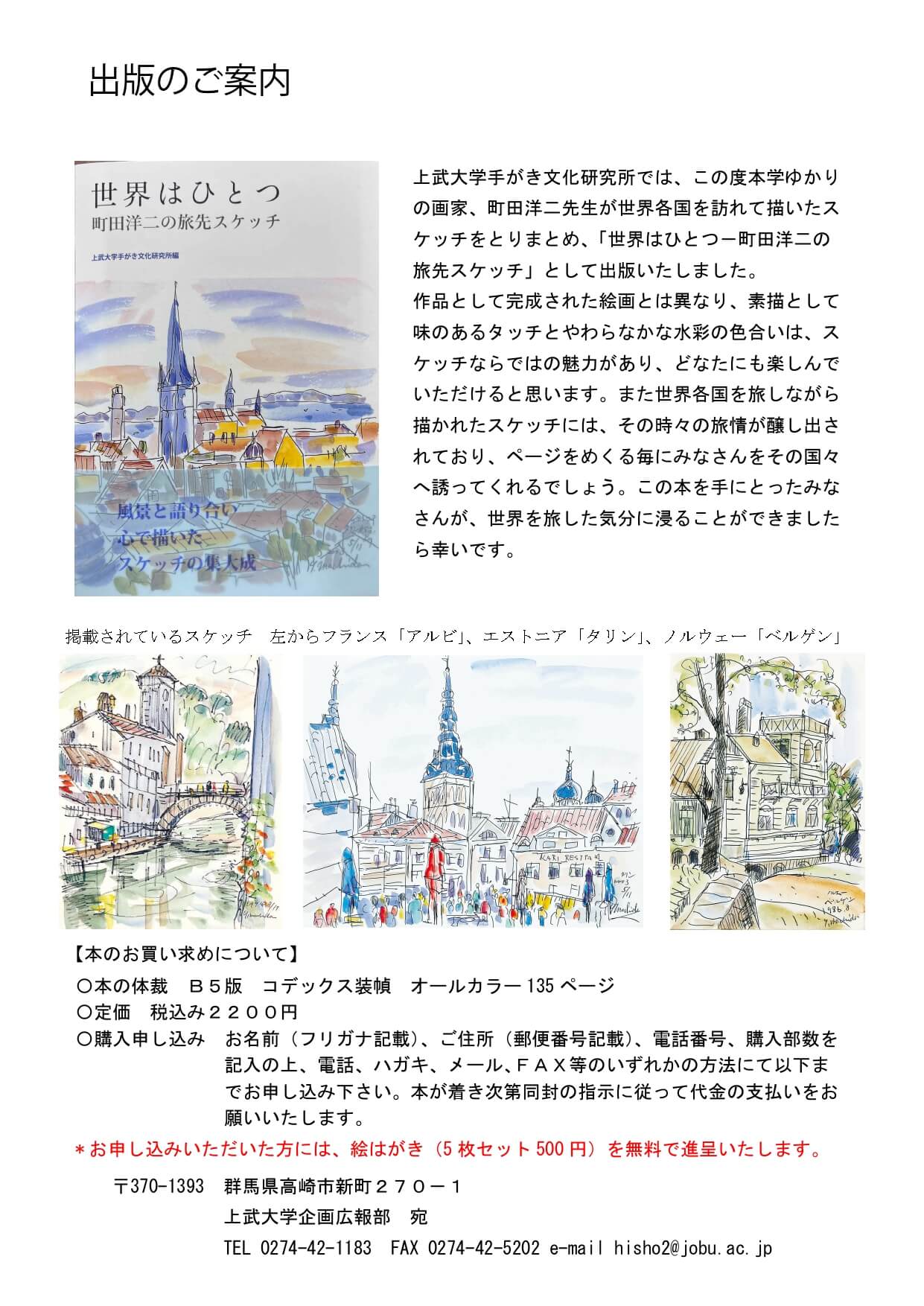 「世界はひとつ町田洋二の旅先スケッチ」出版のご案内