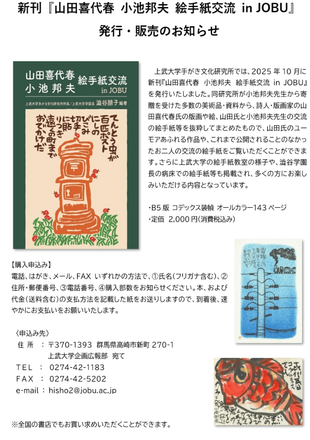 「新刊『山田喜代春 小池邦夫 絵手紙交流 in JOBU』発行・販売のお知らせ」