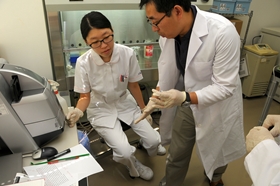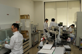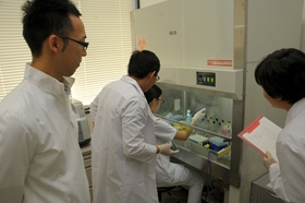 医学生理学研究所は、がん遺伝子の作用機構や血管新生を制御するための分子機構を中心に研究をすすめており、澁谷所長以下常時2名の研究員により研究が進められています。今回、学部内でアシスタントを募集したところ、以前より研究に興味のあったという石垣さんと小池さんが参加しました。「最初は難しそうでしたが、テレビでしか見たことのなかった世界を、学内で経験できてとても楽しかったです。実験の奥深さを知ることができて、自分自身、もっと勉強することが必要だと思いました。チャンスがあればまたやってみたいです」と石垣さんが話してくれました。