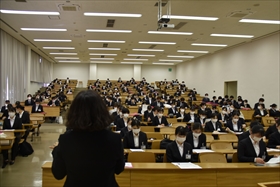 4月7日(水)高崎キャンパスにおいて、看護学部生全員を対象とした「病院説明会」を開催しました。本学の実習先である病院や卒業生が就職している群馬県内22の施設にご参加いただき、教室ごとに分かれて病院の概要や仕事の内容などについて学生たちと面談しました。 1・2年生は主に病院からの全体説明を受け、3・4年生が各病院のブース(教室)での面談に臨みました。1・2年生は 具体的な仕事内容などを知り 自分の将来像を考え、学ぶことへのモチベーションアップに繋がった説明会となりました。3・4年生は面談を希望する病院をあらかじめ決め、限られた時間内に熱心に質問するなど、対面での面談という貴重な時間を少しでも無駄にしたくないという雰囲気が伝わってきました。