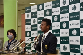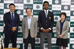 翌12日、指名あいさつに本学伊勢崎キャンパスを訪れた正津中日スカウトは「必ず獲りたい選手だった。走攻守そろった抜群の身体能力と伸び代、さらにはあまりいないアグレッシブなタイプである事を評価した。センターでの活躍が期待でき、将来的にトリプルスリーのポテンシャルを持っている」と非常に高い評価を報道陣の前で語りました。 これに対しブライト選手は「将来チームの中心選手になって日本一に導きたい。全力を貫くスタイルでがんばります」と強い気持ちで応えました。今後も本学選手へのご声援をどうぞよろしくお願いいたします。