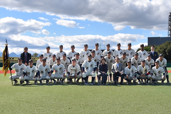 10月23日(土)に関甲新大学野球1部リーグ最終戦で無敗同士対決、上武大学対白鴎大学戦が行われ、本学が1対0で勝利し、3季連続、36度目のリーグ優勝となりました。試合は序盤から投手戦の様相を呈し、来年度ドラフト候補である3年加藤泰靖投手が9回まで2安打11奪三振無失点の巧投を見せつけ、それに打線が応える形で9回裏に無死満塁でのサヨナラ勝利を決めました。今季の成績により2位の白鴎大学と共に11月1日より実施される第17回関東地区大学野球選手権に出場します。引き続き、本学硬式野球部へのご声援の程よろしくお願いいたします。