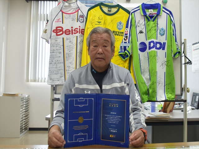 本学サッカー部の植木繁晴総監督(ビジネス情報学部教授)が日本サッカー協会100周年表彰の功労表彰を受賞しました。当表彰は各地域での活動を含め日本サッカー界において永年にわたり普及や発展に貢献した個人又は団体が対象となるもので、植木総監督は(株)フジタ工業(現・湘南ベルマーレ)時代に中心選手として日本サッカーリーグ3度優勝、天皇杯2度の優勝を経験し、日本代表にも選出されました。現役後は数々のプロサッカー選手を世に送り出し、多くの球団立ち上げに尽力し、選手としても、指導者としても日本サッカー界の黎明期を支えました。