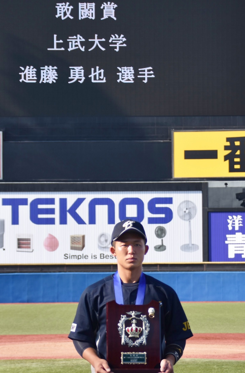 また、大会敢闘賞として本学ビジネス情報学部3年生の進藤勇也選手が受賞しました。