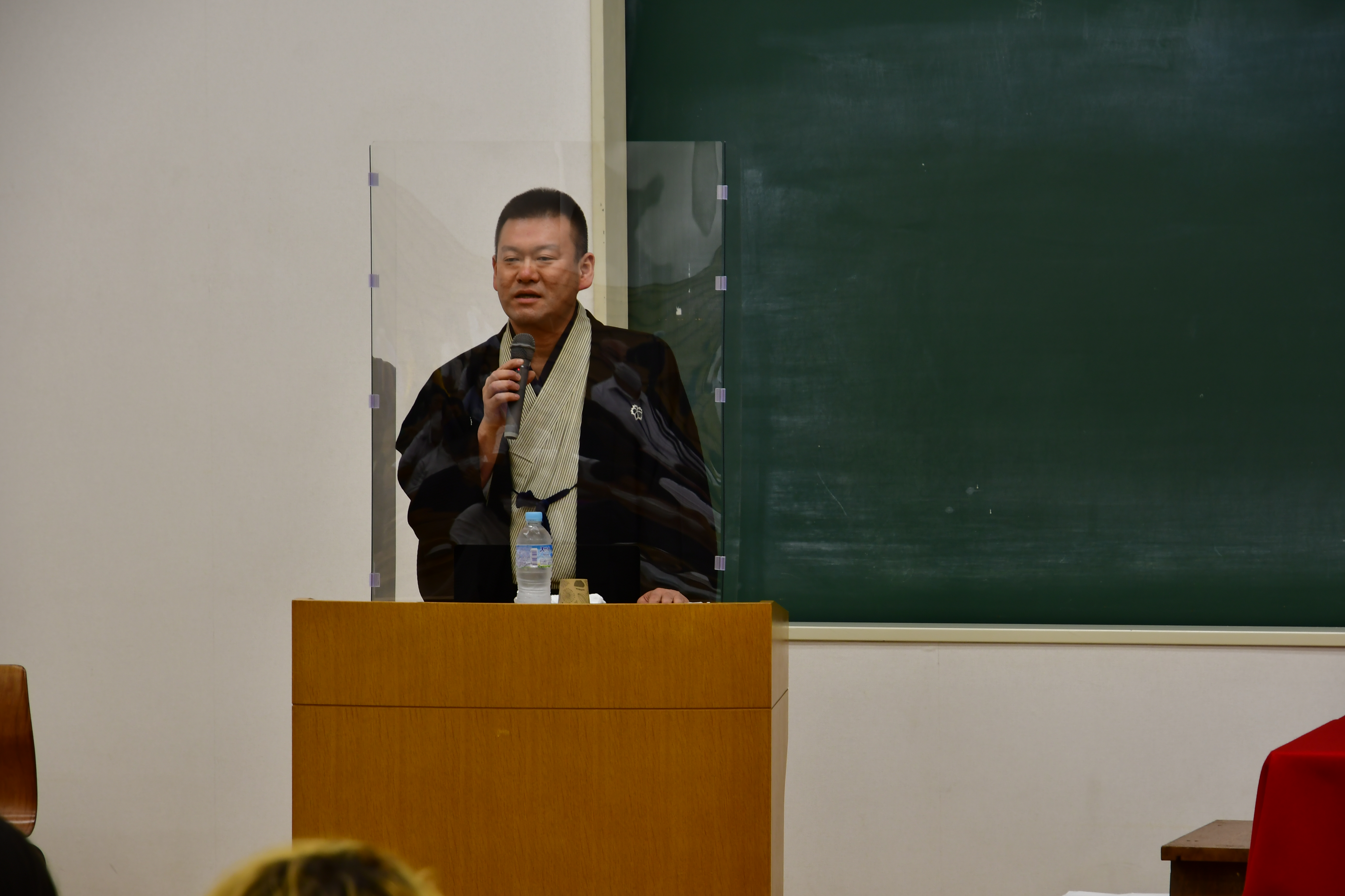 本学OBの三遊亭金朝師匠、国際ビジネス学科で講演!